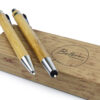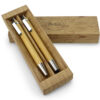 In een handig kartonnen opbergdoosje voorzien van ons logo, zit deze 2-delige pennenset. Deze schrijfset bestaat uit een blauw schrijvende balpen met drukknop en een pen met vulpotlood. Deze fraaie set is leuk om cadeau te doen, maar je kunt hem natuurlijk ook zelf gebruiken. Deze stoere bamboepennen staan goed in ieder kantoor of werkruimte (aan huis).